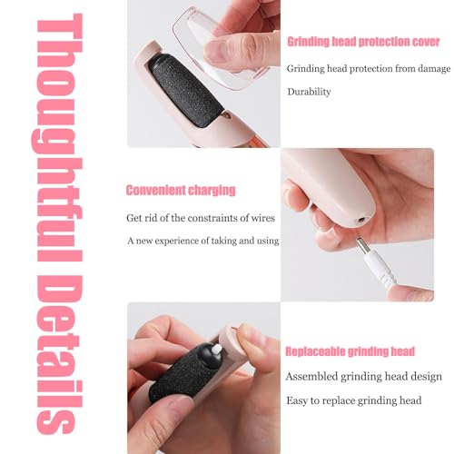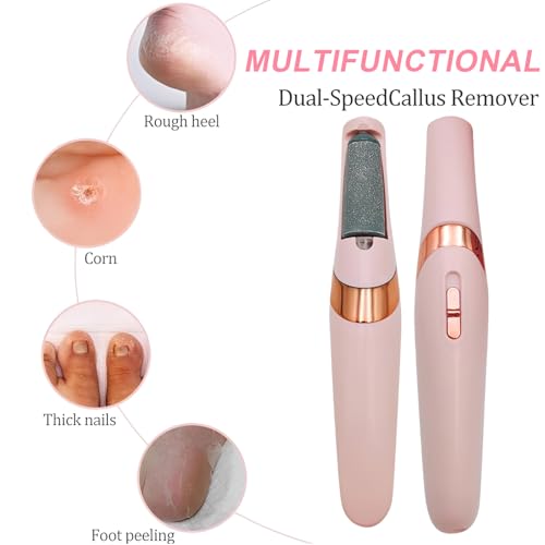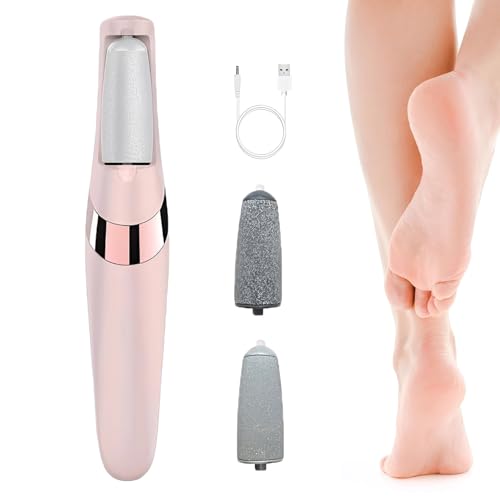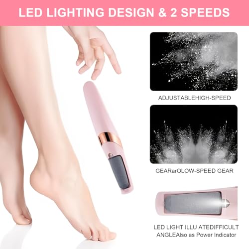 PQXJIOAE - مبرد قدم كهربائي، مزيل الجلد الصلب للقدم، قابل لاعادة الشحن بمنفذ USB، مزيل مسامير القدم الكهربائي مقاوم للماء بسرعتين، رؤوس خشنة ورقيقة، ضوء LED، لعلاج الكعب الجاف المتشقق، الجلد الميت