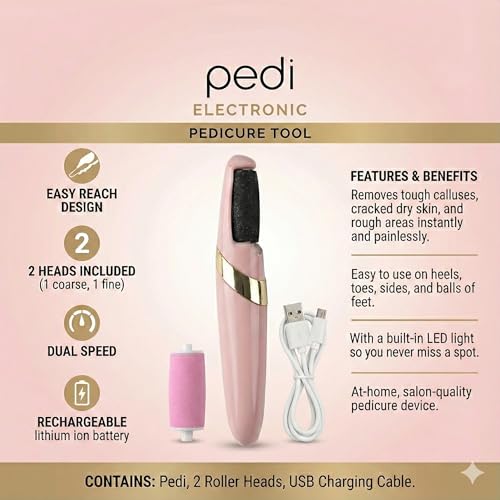 Generic - مبرد قدم كهربائي قابل للشحن USB لإزالة الجلد الميت والكالو – جهاز باديكير للقدم برأسين رولر وسرعتين مع إضاءة LED