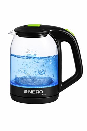 Generic - غلاية كهربائية زجاجية سعة 1.8 لتر مع ضوء LED ازرق، سخان مياه سريع الغليان وايقاف تلقائي وحماية من الغليان الجاف، زجاج البوروسيليكات الخالي من البيسفينول ايه