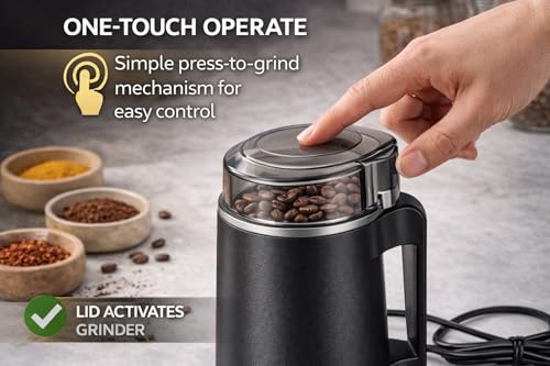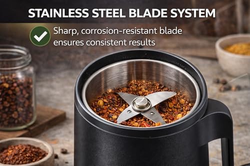 - مناسبة لطحن القهوة والتوابل والبذور والمكسرات الجافة، للاستخدام المنزلي أو المكتبي، بينما السعة الداخلية غير متوفرة ولم يتم ذكر أبعاد أو وزن المنتج.