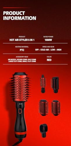 Generic - مجموعة فرشاة شعر كهربائية مكونة من 5 في 1 مجفف شعر بالأيونات السالبة ومشط فرد الشعر