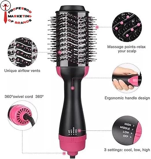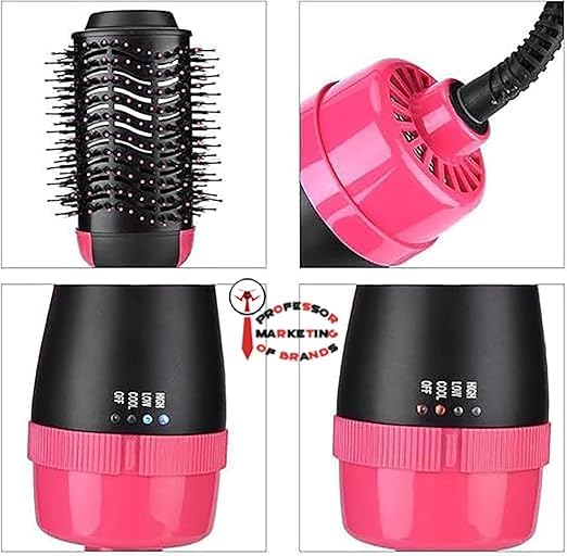Generic - مجفف شعر كهربائي ومملس وفرشاة تصفيف - فرشاة هواء ساخن 360 درجة لتجفيف وتصفيف سريع مع تقنية أيونية مضادة للتجعد. فرشاة مجفف شعر أيونية سوداء.