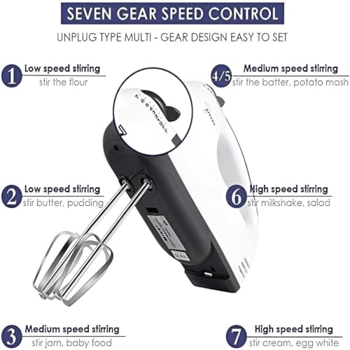- إحدى الميزات البارزة لمضرب البيض الكهربائي هو إعدادات السرعة السبعة المختلفة. يتيح لك هذا التنوع اختيار السرعة المثالية لاحتياجات الخلط الخاصة بك، سواء كنت تخفق بياض البيض إلى درجة الكمال أو تعجن العجين لمنتجاتك المخبوزة المفضلة. بفضل هذا المستوى من التحكم، يمكنك تحقيق القوام والملمس المطلوبين في وصفاتك بكل سهولة.