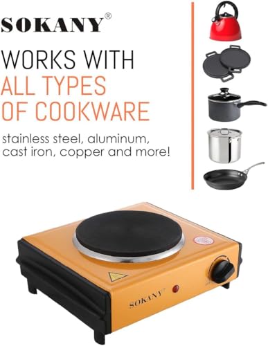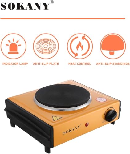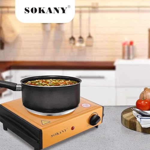 Sokany - موقد كهربائي مفرد 1000 واط، موقد طهي محمول مع تحكم في درجة الحرارة، لوحة تسخين غير لاصقة، حماية من الحرارة الزائدة، موقد كهربائي صغير الحجم للمنزل والمكتب، سوكاني SK-100A