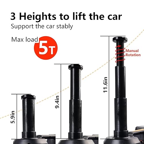 - فعال: يعمل مع منفذ السيارة 12 فولت، سعة جاك 5T (11000 باوند). يمكن رفع السيارة في أقل من دقيقة واحدة بواسطة المقبس، ويمكن إزالة مسامير الإطارات وتركيبها بسرعة بواسطة مفتاح الربط ويمكن نفخ الإطار تلقائيًا بواسطة المضخة.