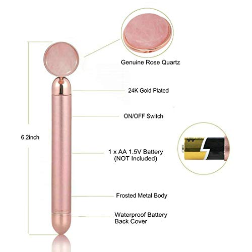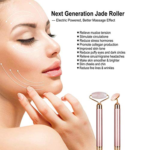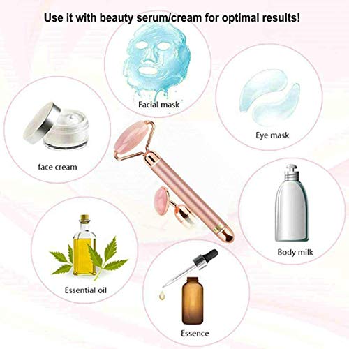 PJYU - عصا متدحرجة للتدليك، لون روز ذهبي، مصنوعة من اليشم والكوارتز الوردي، مع خاصية الاهتزاز والتحكم بالسرعة وتأثير التبريد، تستخدم تقنية الاهتزاز للتدليك