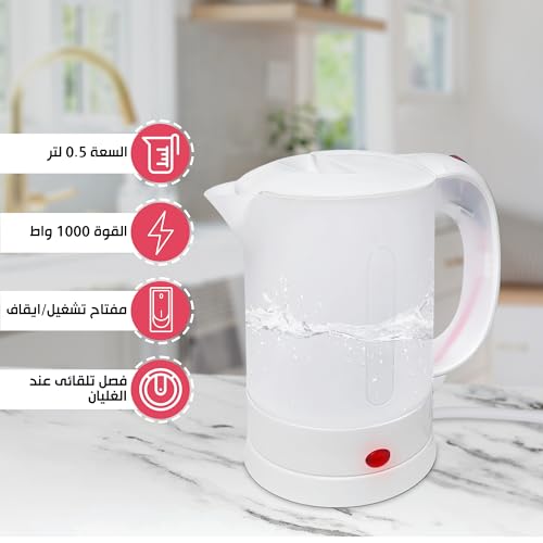 Generic - غلاية كهربائية للماء – 1000 وات للغليان السريع، سعة 0.5 لتر، من الفولاذ المقاوم للصدأ، بنظام إيقاف تشغيل تلقائي، ومصباح مؤشر، ومقبض عازل للحرارة، وحماية من التشغيل الجاف، طراز HMA-1036