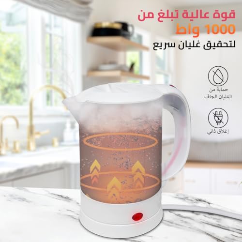 - غليان سريع في دقائق: لا حاجة للانتظار طويلًا للحصول على ماء ساخن — يمكنك غلي الماء في دقائق معدودة بفضل الأداء القوي بقدرة 1000 وات، ما يجعلها مثالية لتحضير الشاي الصباحي أو قهوة سريعة في أي وقت.