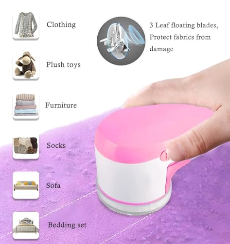 Generic - مزيل وبر كهربائي - ماكينة حلاقة قماشية قابلة لاعادة الشحن لازالة الحبوب والزغب من الملابس، متوافقة مع جميع الاقمشة، بينك وابيض