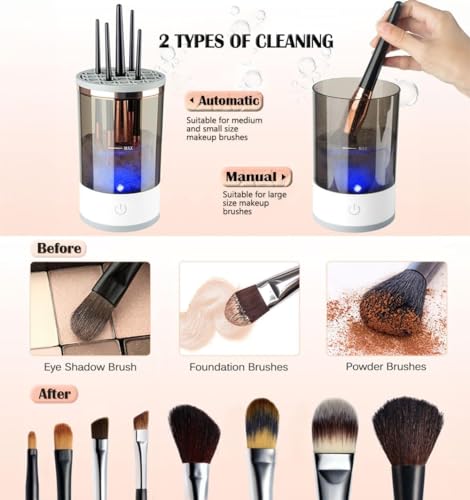 - تنظيف عميق وفعال: يستخدم دوران عالي السرعة لإزالة ما يصل إلى 98٪ من البقايا والأوساخ والزيوت من فرش المكياج بجميع أحجامها