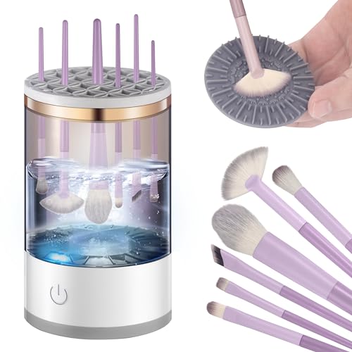 WIKICK - منظف فرش مكياج كهربائي، منظف فرش مكياج ومستحضرات التجميل مع مفرش تنظيف فرش المكياج، منظف فرش المكياج الدوار التلقائي يناسب جميع مقاسات فرش المكياج