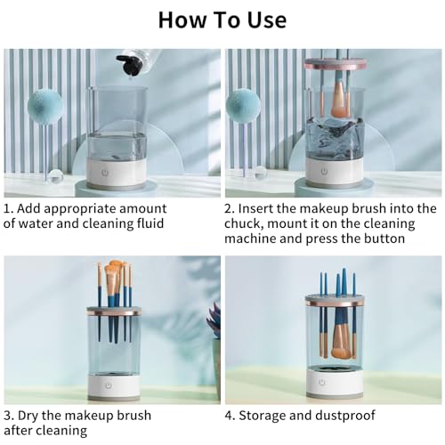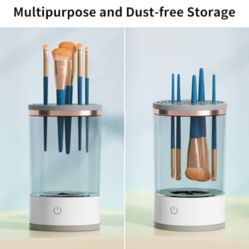 - متعددة الأغراض: بعد التنظيف، يمكنك وضع الفرشاة رأسًا على عقب على الغطاء لتجف. يمكنك أيضًا تخزين الفرش الخاصة بك في منظف فرش المكياج الأوتوماتيكي للحفاظ عليها خالية من الغبار.