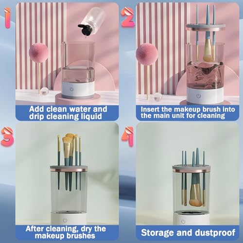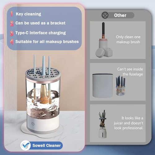 - 【سهل الاستخدام】 تم تصميم منظف فرش المكياج الكهربائي المطور خصيصًا ليعمل بزر واحد، مما يجعله سهل الاستخدام. ما عليك سوى إضافة الكمية المناسبة من الماء ومحلول التنظيف، ثم إدخال فرشاة المكياج، وتشغيل المفتاح لبدء التنظيف التلقائي. بعد الانتهاء، اقلبي فرشاة المكياج واتركيها تجف في الهواء. يسمح لك الغطاء الشفاف برؤية عملية التنظيف بسهولة وما إذا كانت الفرش قد تم تنظيفها بالكامل وضمان نتيجة تنظيف مرضية.