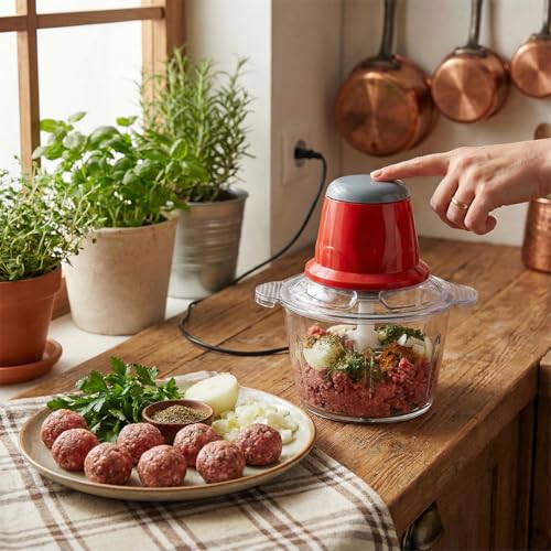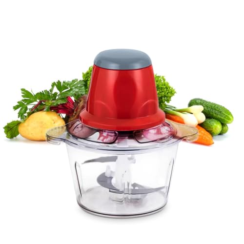 Generic - مفرمة لحوم كهربائية، مفرمة طعام 250 وات، محضر طعام للمطبخ مع شفرات من الفولاذ مقاوم للصدأ للحوم والخضروات والفواكه للاستخدام المنزلي، سعة 2 لتر (لون أحمر)