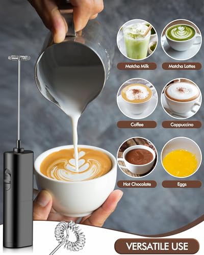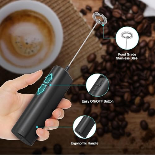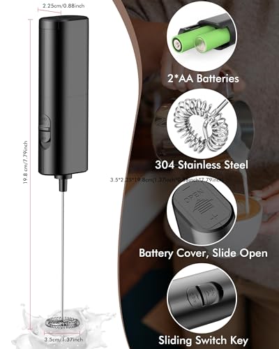 Dollar for Import - مضرب حليب كهربائي محمول، صانع رغوة القهوة والكابتشينو، أسود، ستانلس ستيل، يعمل بالبطارية دولار لاستيراد الادوات المنزليه