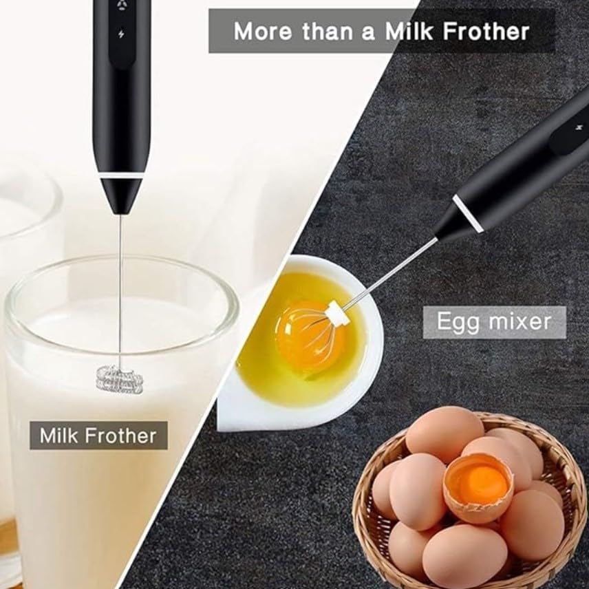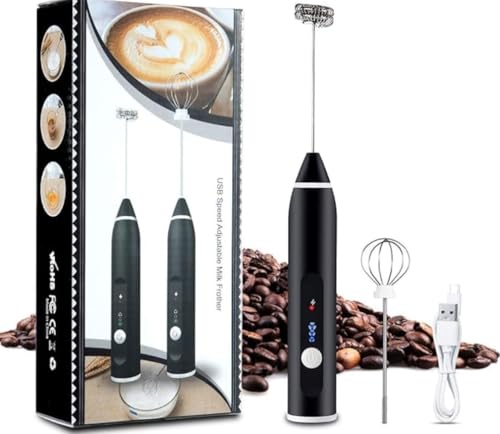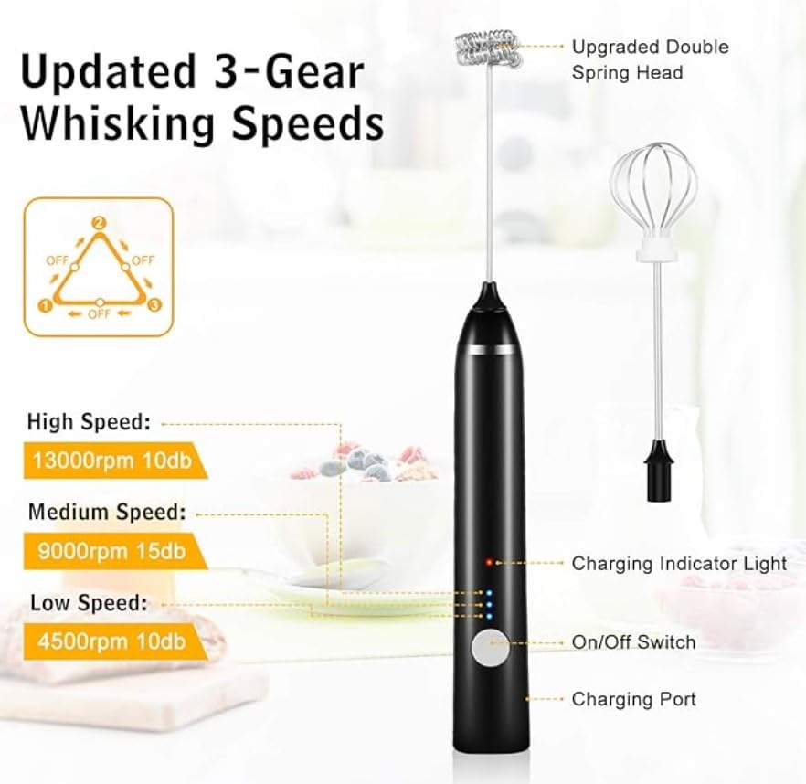 Generic - أداة خفق اللبن الكهربائية مع 3 إعدادات للسرعة 12000 و9000 و4500 دورة في الدقيقة مزودة بخفاقة مزدوجة الزنبرك قابلة للشحن عبر منفذ USB، لون أسود