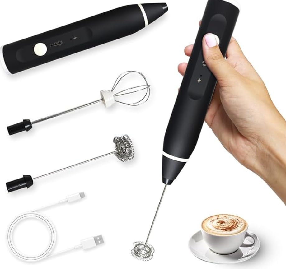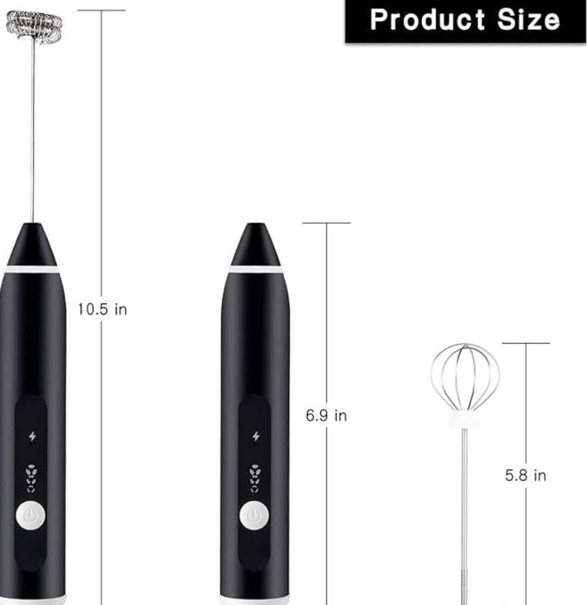 - تصميم صغير الحجم: أداة خفق اللبن يبلغ طولها 26.7 سم، بلمسة نهائية باللون الأسود الأنيق وتشغيل سهل بزر واحد.