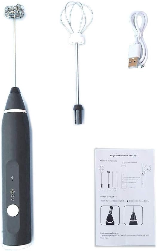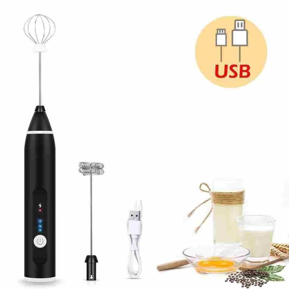 Generic - اداة خفق اللبن الكهربائية مع مضرب مزدوج، صانعة رغوة كهربائية قابلة لاعادة الشحن عن طريق USB، اداة خفق اللبن تحمل باليد 2 في 1 وتعمل بالبطارية للقهوة واللاتيه والكابتشينو وخفق البيض
