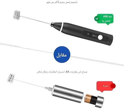 - على عكس أدوات صنع الرغوة التقليدية التي تعتمد على البطاريات القابلة للاستبدال، يتميز هذا الجهاز ببطارية مدمجة حديثة قابلة لإعادة الشحن وإمكانية شحن USB. قل وداعًا لتبديلات البطارية المستمرة - هذا هو رفيقك الموثوق به لصنع اللاتيه والكابتشينو والشوكولاتة الساخنة وأكثر من ذلك، كل ذلك بأقل قدر من المتاعب وأقصى قدر من الكفاءة.