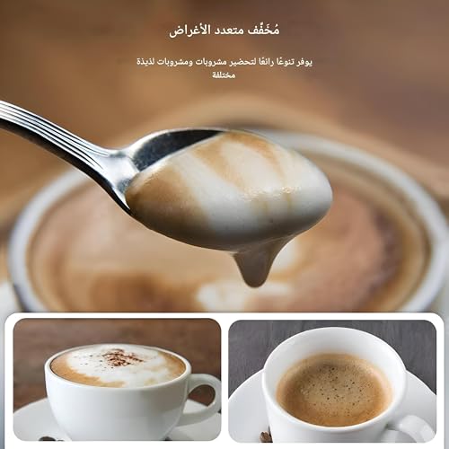 - مصمم لعشاق القهوة، يوفر صانع رغوة الحليب خفيف الوزن وسهل الاستخدام رغوة غنية وكريمية تمامًا مثل صانع القهوة الاحترافي. إنه ليس مثاليًا فقط لصنع المشروبات الفاخرة في المنزل ولكنه يخدم أيضًا مجموعة واسعة من مهام المطبخ - مزج العصائر وخلط الصلصات وخفق بياض البيض - ويأتي معه مقبض ورأسين للخفق وكابل شحن USB ودليل المستخدم (توفره باللغة العربية غير مؤكد).