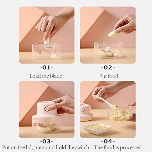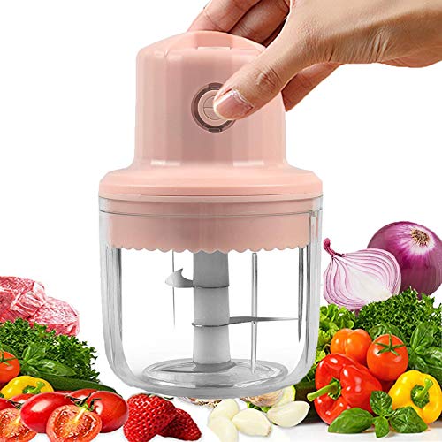 YEIRVE - قطاعة ثوم كهربائية صغيرة، بقوة 45 وات بسعة 10 اونصة، مفرمة طعام محمولة وسهلة التنظيف ولاسلكية مع شحن USB، الخضروات / الجنزبيل / اللحم البقري / البصل / الفلفل / طعام الاطفال