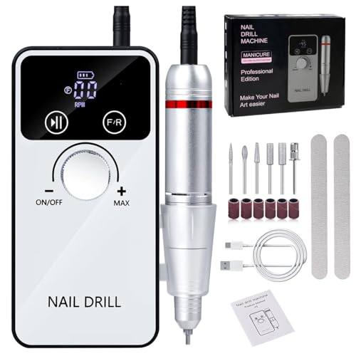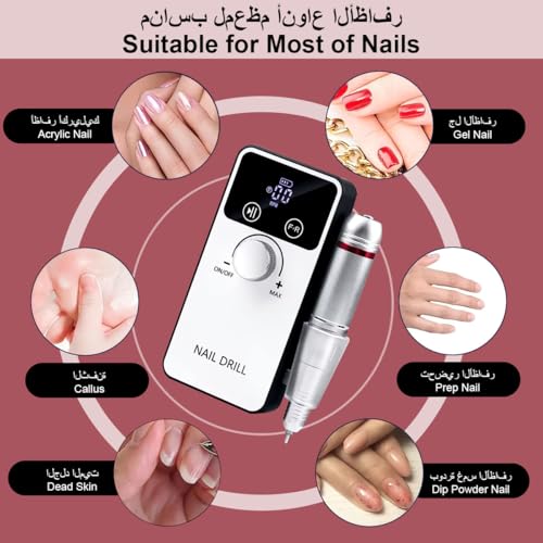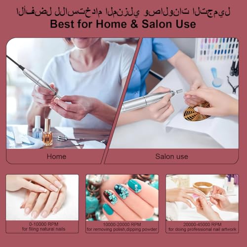 Felirzavy - مجموعة مبرد أظافر كهربائي احترافي 45000 RPM آلة برد أظافر مع 6 رؤوس مثقاب وشريطين صنفرة، أداة تلميع أظافر محمولة قابلة لإعادة الشحن للمنزل وصالونات التجميل للنساء