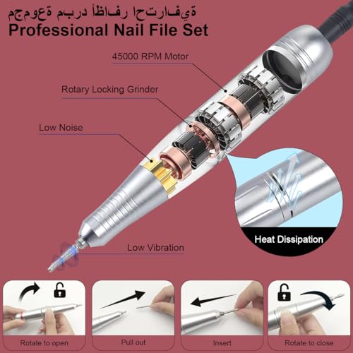 - 【مجموعة مبرد أظافر كهربائي احترافي】 مجموعة مبرد الأظافر الكهربائي فيلرزافي للفتيات معبأة مع 6 رؤوس مبارد الأظافر مختلفة وشريطين صنفرة، يمكنك اختيار لقمة مثقاب الأظافر المطلوبة بسرعة، والقيام بعمل فني للأظافر في أي وقت وفي أي مكان. بالإضافة إلى ذلك، فإن صاروخ تلميع الأظافر المحمول القابل لإعادة الشحن بمنفذ USB قابل للتعديل بدرجة عالية من 0 إلى 45000 RPM. يمكن استخدام آلة برد الأظافر لصالونات التجميل المنزلية لبرد وقص وتلميع وإزالة أظافر الجل والزوائد اللحمية والجلد الميت دون إيذاء اليدين والأظافر