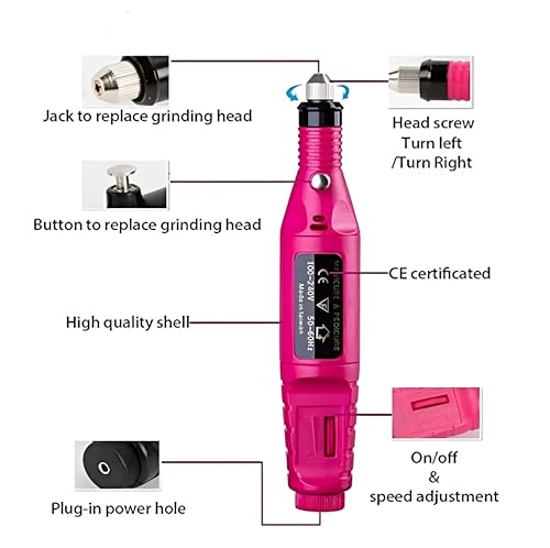 Generic - طقم مبرد اظافر كهربائي - اداة مانيكير قابلة لاعادة الشحن بمنفذ USB مع 6 رؤوس قابلة للتبديل واشرطة صنفرة، زهري، سرعة متغيرة 0-20000 دورة في الدقيقة للاظافر بجودة صالونات التجميل في المنزل