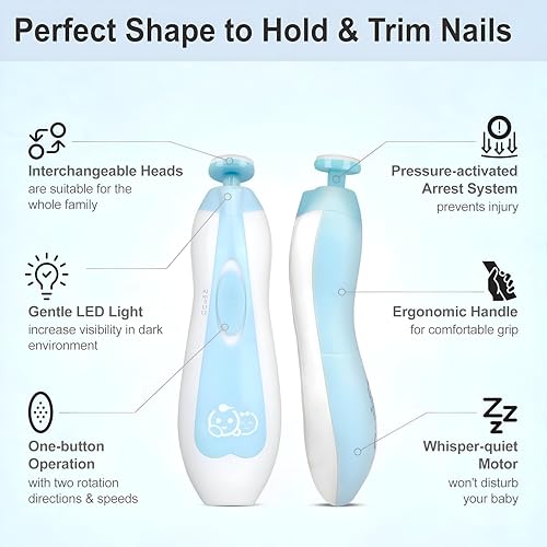 Generic - مبرد أظافر كهربائي، أداة تشذيب احترافية وآمنة لقص أظافر الأطفال، يتميز بمقبض مريح، محرك هادئ، وإضاءة ليد للعناية الدقيقة بأظافر اليدين والقدمين للرضع، متوفر بعدة ألوان