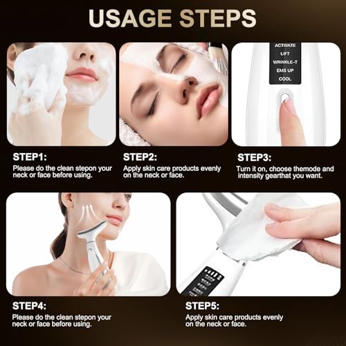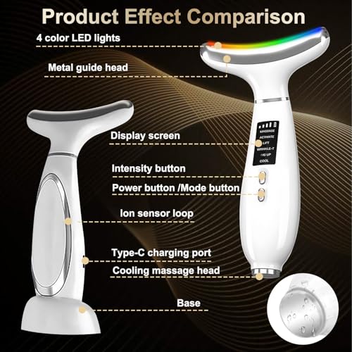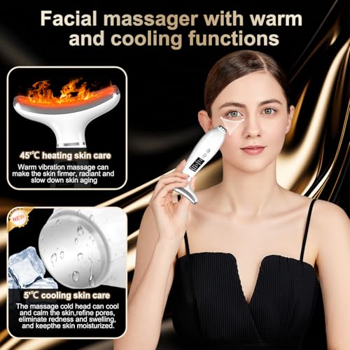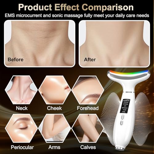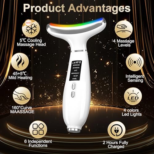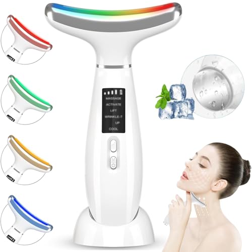 Xkimos - جهاز تدليك كهربائي للرقبة والوجه، تدليك محمول للتدفئة والتبريد وشد الوجه، 6 اوضاع و4 أضواء ملونة ورأس تدليك مبرد، من 5 - 45 درجة مئوية، أداة شد ورفع الوجه