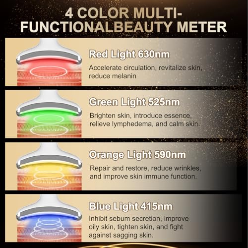 - 【علاج ضوئي متطور بأربعة ألوان]】يحتوي جهاز رفع الوجه على 4 أوضاع إضاءة LED (الأحمر والأخضر والبرتقالي والأزرق)، مع أطوال موجية بين 430 نانومتر - 680 نانومتر، وألوان الإضاءة المختلفة تلعب دورًا فريدًا. يساعد الضوء الأحمر على نمو الكولاجين ويحسن مرونة البشرة؛ يركز الضوء الأخضر على أكسجة الخلايا ويهدئ البشرة؛ يعالج الضوء البرتقالي حمامي البشرة بفعالية؛ الضوء الأزرق ينظم إفراز الزهم بدقة ويحمي صحة البشرة بأبعاد متعددة.