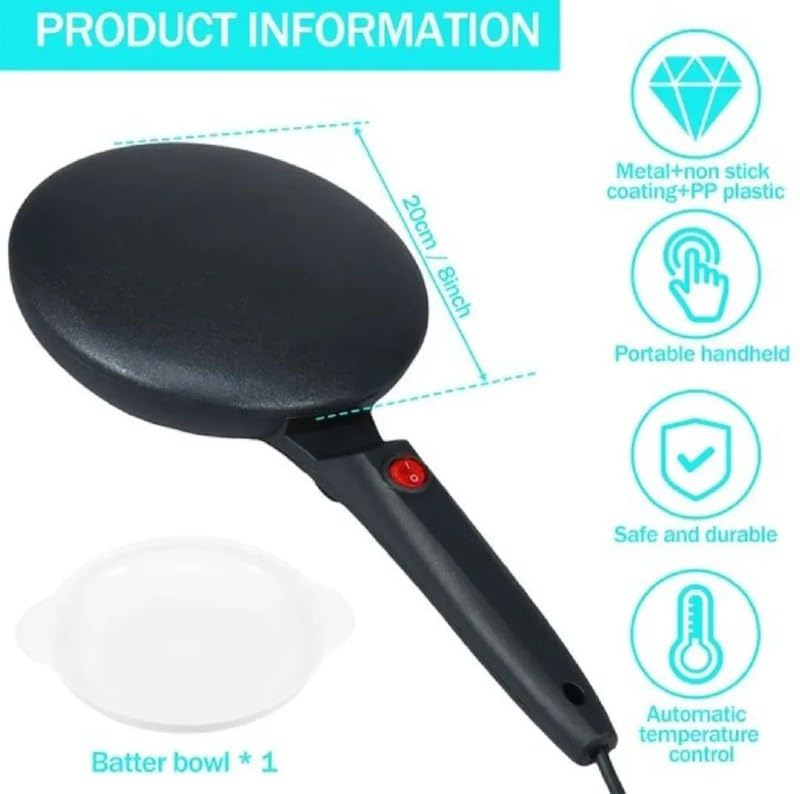 Generic - طاسة بان كيك وكريب كهربائية بنظام تسخين سريع وسطح مانع للالتصاق لتحضير وجبات خفيفة ومنظمة بذكاء ka