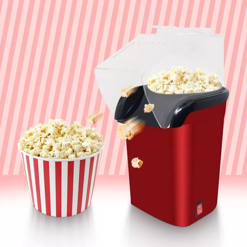 Generic - آلة صنع الفشار الكهربائية، أحمر وأسود، بدون زيت، للاستخدام المنزلي