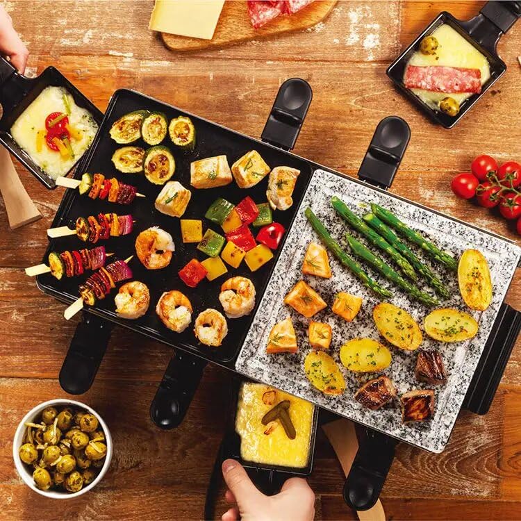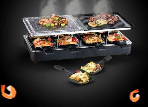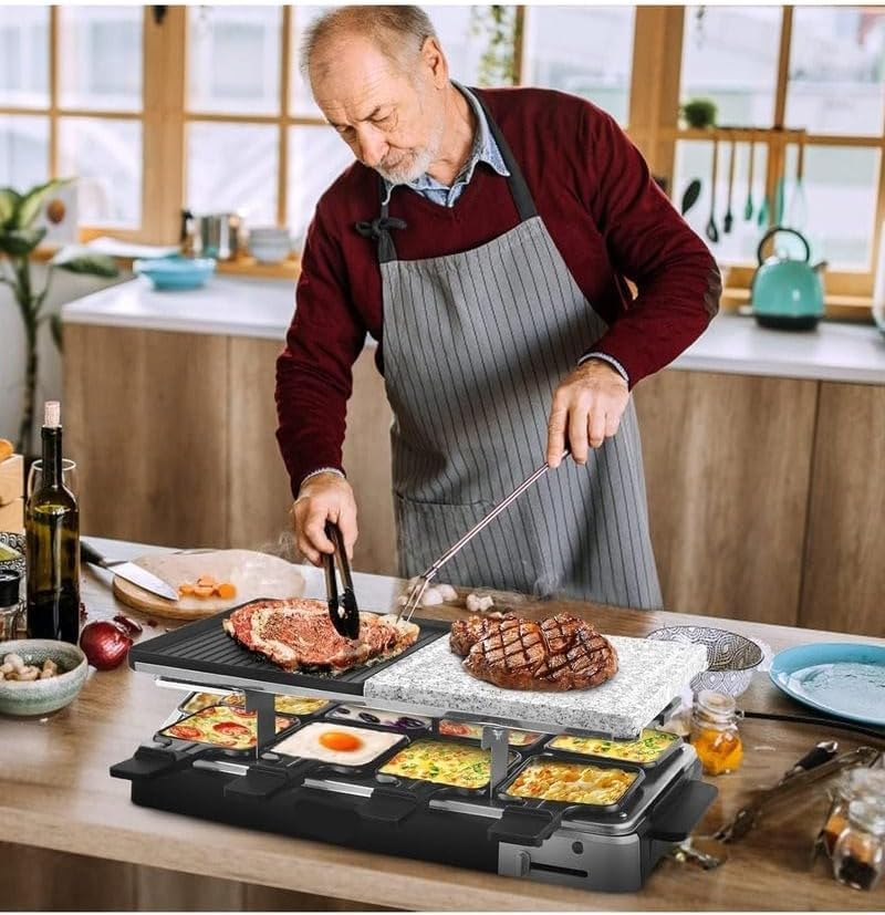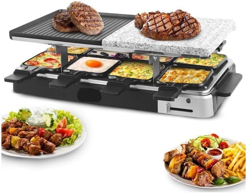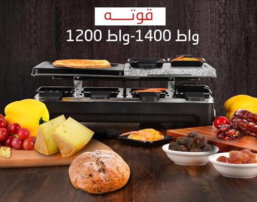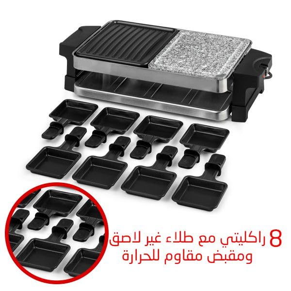 Generic - جريل راكليت كهربائي 1400 وات – سطح مزدوج (رخام طبيعي + ألومنيوم غير لاصق) – 8 مقالي فردية – تحكم حراري ومفتاح أمان