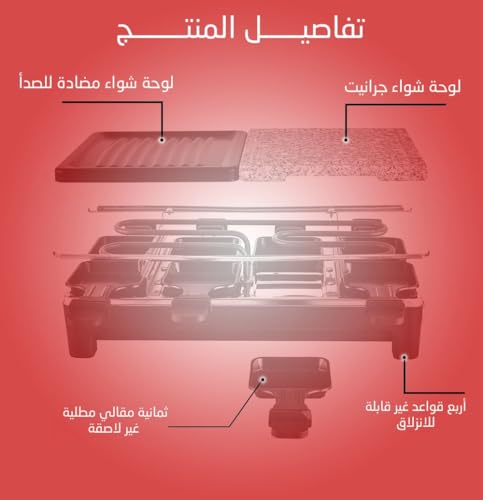 - الاستخدامات المثالية مثالي للشواء الصحي بدون دهون زائدة بفضل الألواح الطبيعية وغير اللاصقة. مناسب لتقديم وجبات عائلية أو عشاء فاخر للأصدقاء في المنزل. تصميم مدمج وعملي يناسب جميع المطابخ ويوفر مساحة.