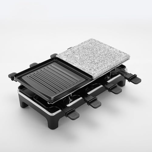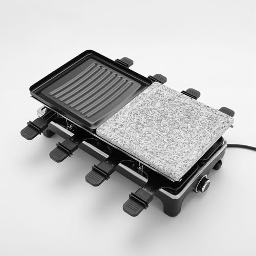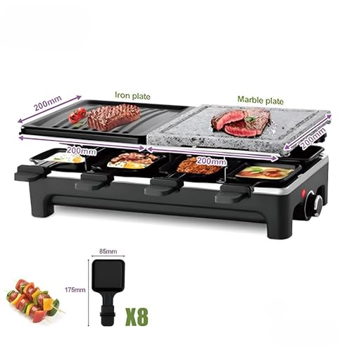 Generic - شواية راكليت كهربائية 1500 واط - 8 في 1 - مع لوحي شواء (حديد ورخام) و 8 مقالي فردية - مثالية للشواء المنزلي والحفلات