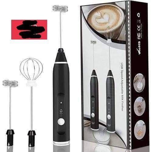 Generic - مضرب كهربائي قابل لإعادة الشحن للقهوة والبيض، 3 سرعات، يشمل 3 ملحقات، شحن USB، أسود