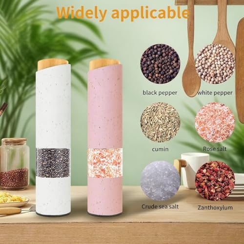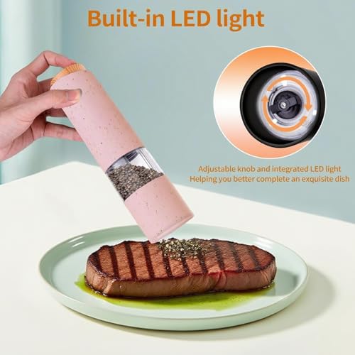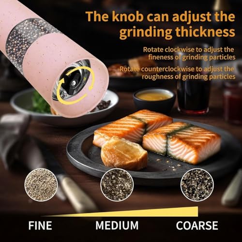 jjojcll - طقم مطحنة ملح وفلفل كهربائية - درجة طحن قابلة للتعديل، تعمل بالبطارية مع إضاءة ليد، تصميم شفاف 360 درجة للمطبخ والطهي في الأماكن الخارجية، مثالية للطهاة المنزليين ومحبي الهدايا