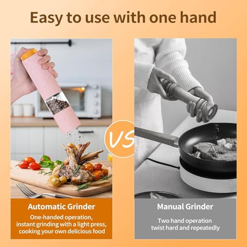 - [سهلة الاستخدام والحمل] يمكن تشغيل مطحنة الملح والفلفل الخاصة بنا بزر واحد ويد واحدة، استخدم مطحنة الفلفل عندما تكون يدك الأخرى مشغولة بتقليب الحساء وتتبيل شرائح اللحم وخلط السلطة أو حتى الرد على الموبايل. صغيرة الحجم وخفيفة الوزن، مناسبة جدًا للتجمعات مع العائلة والأصدقاء وللنزهات، وما إلى ذلك، كما أنها سهلة الحمل.