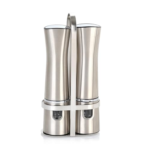 Generic - طقم مطحنة ملح وفلفل كهربائية، مطحنة من الستانلس ستيل تعمل بالبطارية مع حامل، قطعتين