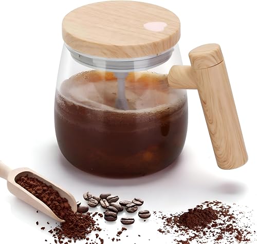 - ☕➤مادة عالية الجودة، هذا الكوب ذاتي التحريك مصنوع من زجاج البوروسيليكات عالي الجودة، والمعروف بمتانته ومقاومته للحرارة. يسمح لك التصميم الأنيق ببدء أو إيقاف عملية التحريك في أي وقت بنقرة بسيطة دون إضافة روائح أو مواد إلى مشروبك.