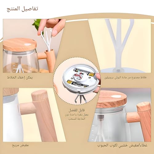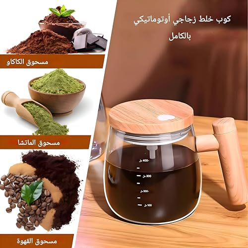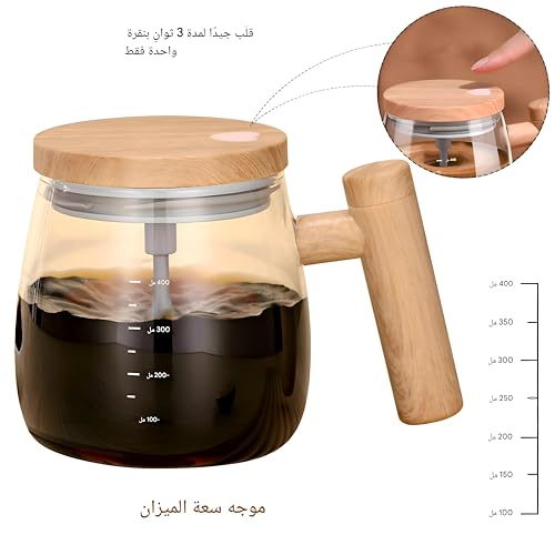 - ☕➤مادة عالية الجودة، هذا الكوب ذاتي التحريك مصنوع من زجاج البوروسيليكات عالي الجودة، والمعروف بمتانته ومقاومته للحرارة. يسمح لك التصميم الأنيق ببدء أو إيقاف عملية التحريك في أي وقت بنقرة بسيطة دون إضافة روائح أو مواد إلى مشروبك.