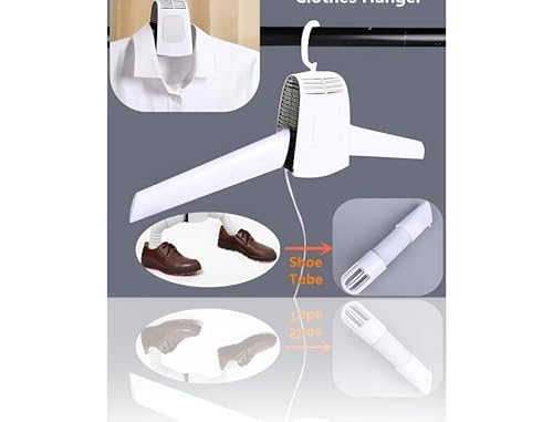 Generic - شماعة كهربائية لتجفيف الاحذية والملابس - مكواة بخار متعددة الوظائف قابلة للطي بدرجة حرارة قابلة للتعديل، مادة ABS بيضاء، تتضمن شنطة تخزين وصناديق احذية مخصصة للتخزين المدمج.