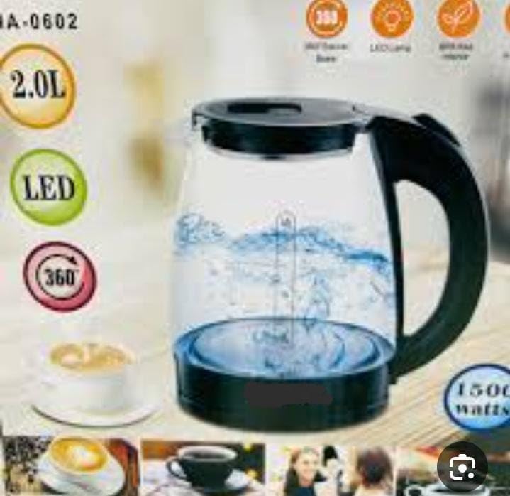 - السعة: غلاية زجاجية كبيرة بسعة 2.0 لتر مع علامات واضحة لمستوى المياه من 0.5 لتر إلى 2.0 لتر، مثالية لإعداد أكواب متعددة من المشروبات الساخنة