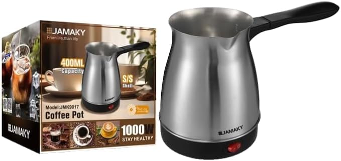 Generic - ماكينة تحضير القهوة التركية الكهربائية، فولاذ مقاوم للصدأ، سعة 400 مل، فضي وأسود، موديل JMK9017