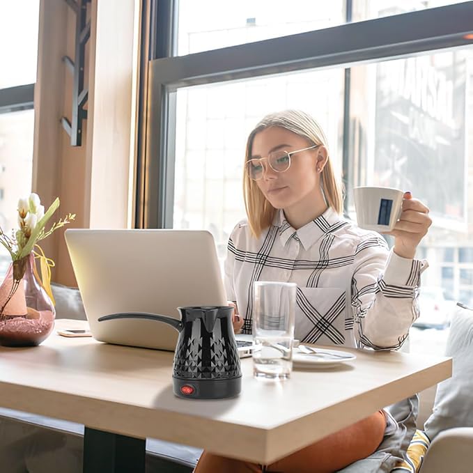 Generic - كنكة قهوة تركية كهربائية - 350 وات، سعة 0.5 لتر (5 أكواب)، تسخين سريع مع نظام حماية مزدوج، تصميم عملي للمطبخ والمكتب والرحلات، أسود