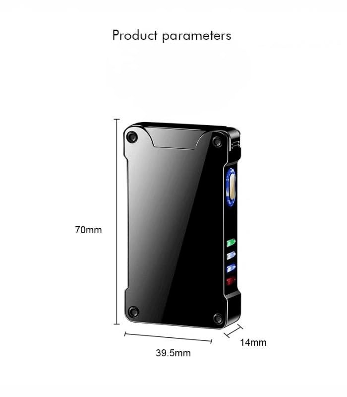 - تصميم صغير الحجم: ولاعة أنيقة وعصرية مقاس 70 × 39.5 × 14 ملم، مثالية للحمل اليومي بفضل مظهرها النحيف واللمسة النهائية السوداء الأنيقة.