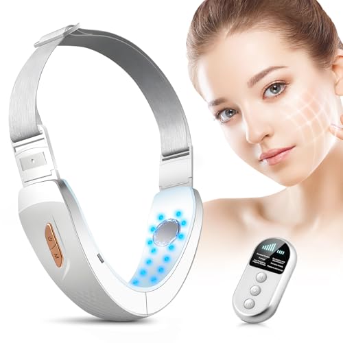 ChapStick - جهاز تدليك كهربائي لنحت الوجه على شكل V يعمل بتقنية اي ام اس وتقنية جوا شا الكهربائية يحتوي على 6 أوضاع للتدليك ومزود بضوءين أحمر وأزرق مع جهاز تحكم عن بُعد لشد البشرة ورفعها