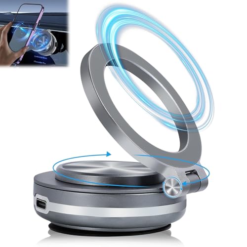 Flushrenic - حامل موبايل مغناطيسي كهربائي للسيارة قابل للدوران 360 درجة، حامل موبايل للسيارة لجميع الهواتف الذكية (فضي)