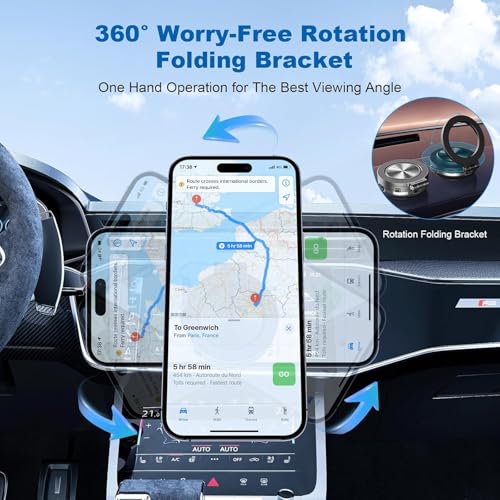 - 【تصميم قابل للتعديل】يوفر حامل الهاتف المغناطيسي للسيارة القابل للدوران بزاوية 360 درجة مرونة كاملة مع وظائف الدوران 360 درجة والطي 270 درجة. اضبط هاتفك بسهولة على أي زاوية للحصول على أفضل تجربة مشاهدة، سواء كنت تقود أو تعمل أو تمارس الرياضة.